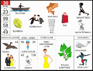 Angka main 30 dalam buku mimpi erek erek 30 bergambar kerap dikaitkan dengan simbol ikan mas, yaitu jenis ikan air tawar yang mudah dijumpai dan digemari banyak orang karena rasanya yang lezat serta bernilai gizi tinggi. Sosok atau profesi yang berada di bawah naungan angka 30 digambarkan sebagai nelayan, sedangkan toilet menjadi salah satu benda yang juga berhubungan dengan angka main 30 dalam tafsir buku mimpi.